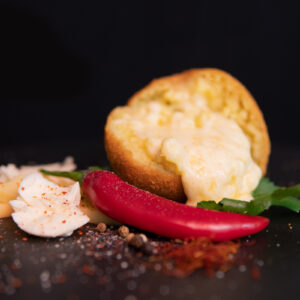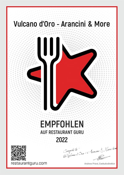 Die safrangelben Reiskugeln bestehen aus Mozzarella, Emmentaler Käse und in Salzlake gelagerter Weißkäse. Die mit Gewürzen verfeinerte Füllung wird mit dem Safranreis umhüllt, paniert und heiß gebacken. Beim ersten Biss, kommt es vor, dass sich der Käse wie lange Spaghetti zieht. Das gibt dieser vegetarischen Variante das gewisse Etwas.